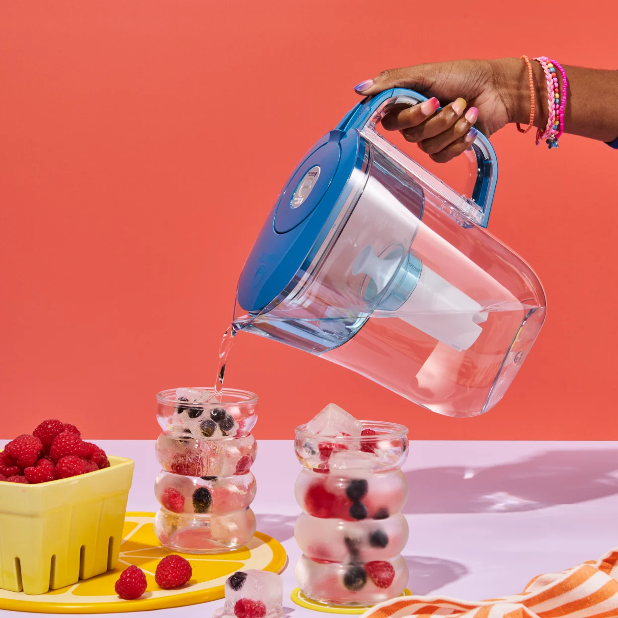We’re always using freshly filtered water to make ice, right? Right. Try filling those cubes with fruit to level up your hydration game, or stir in some electrolyte powder or flavor drops to mix things up.